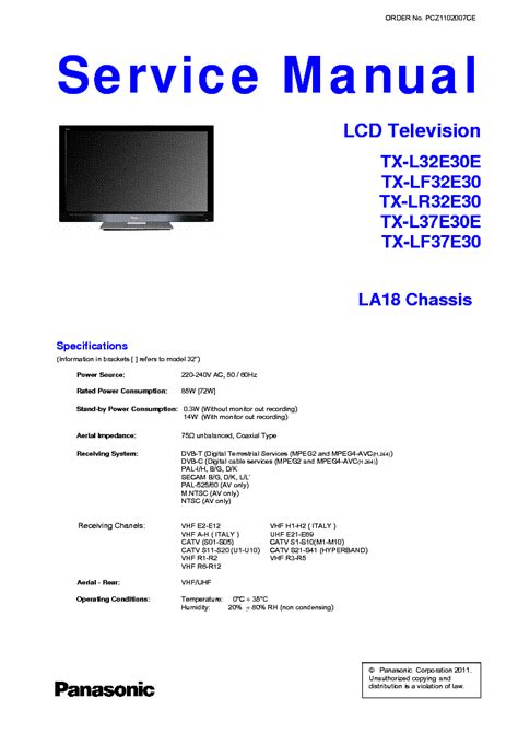 At present you are looking for an Panasonic Tx L37e30e L32e30e Series Service Manual Repair Guide example that we provide here in some type of document formats such as PDF, Doc, Energy Point, and also images that will make it simpler for you to create an Panasonic Tx L37e30e L32e30e Series Service Manual Repair Guide yourself. For a better look, you may open a few examples below. All of the good examples about Panasonic Tx L37e30e L32e30e Series Service Manual Repair Guide with this site, we get from several sources so you may create a better document of your own.