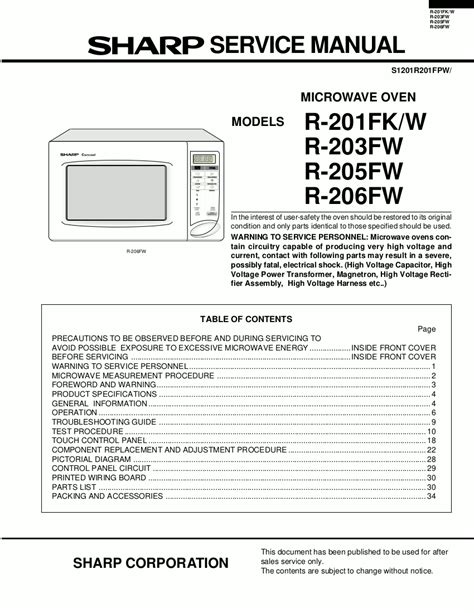 Currently you are looking for an Sharp R 201fk Microwave Oven Service Manual example that we provide here in some type of document formats such as PDF, Doc, Strength Point, as well as images that will make it simpler for you to create an Sharp R 201fk Microwave Oven Service Manual yourself. For a more clear look, you can open some examples below. All the examples about Sharp R 201fk Microwave Oven Service Manual about this site, we get from several sources so you can create a better file of your own.